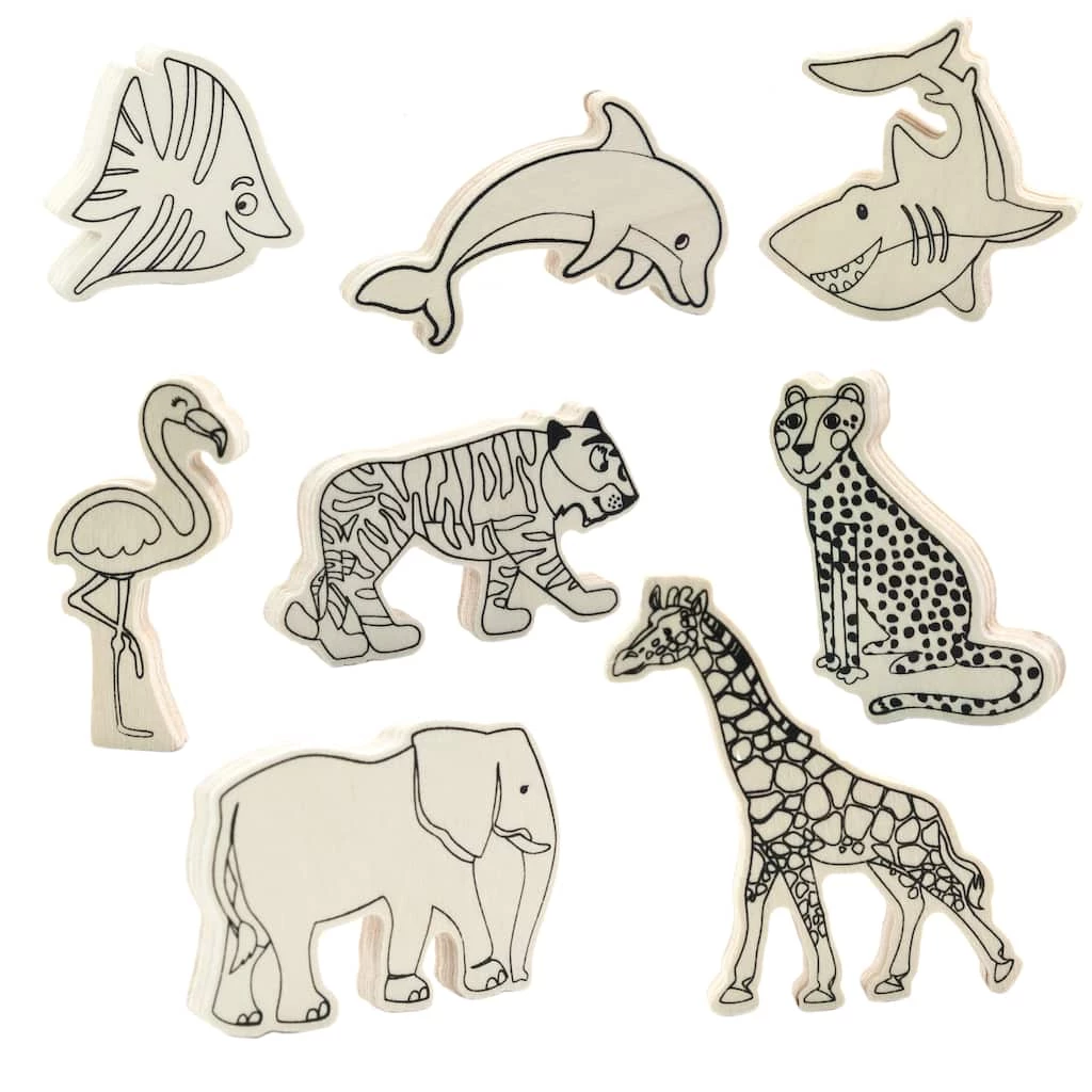 - Each kit makes 8 wood animal shapes