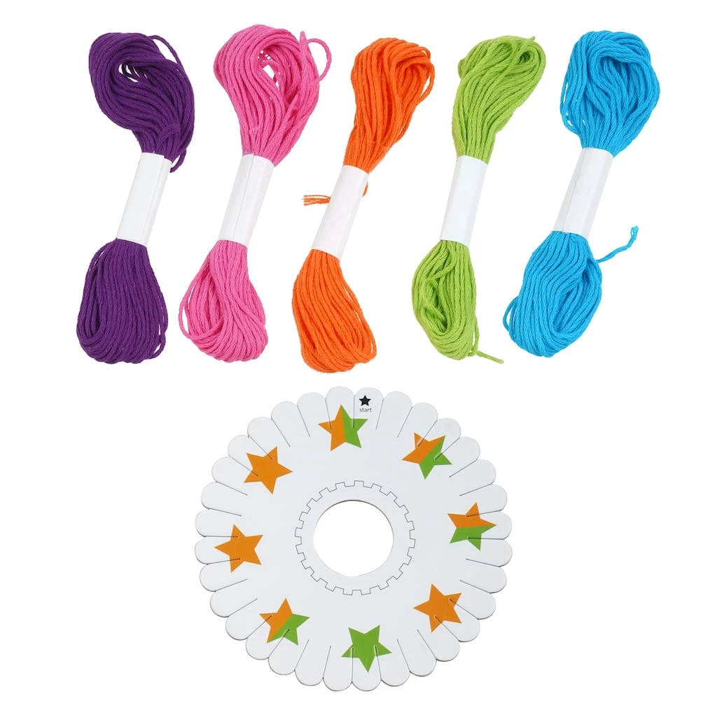 Making friendship bracelets is easy with this bracelet kit by Creatology. Complete with bright yarn skeins and a bracelet wheel, this kit includes everything you need to make personalized bracelets. It offers the perfect way to express a child’s creativity.ย