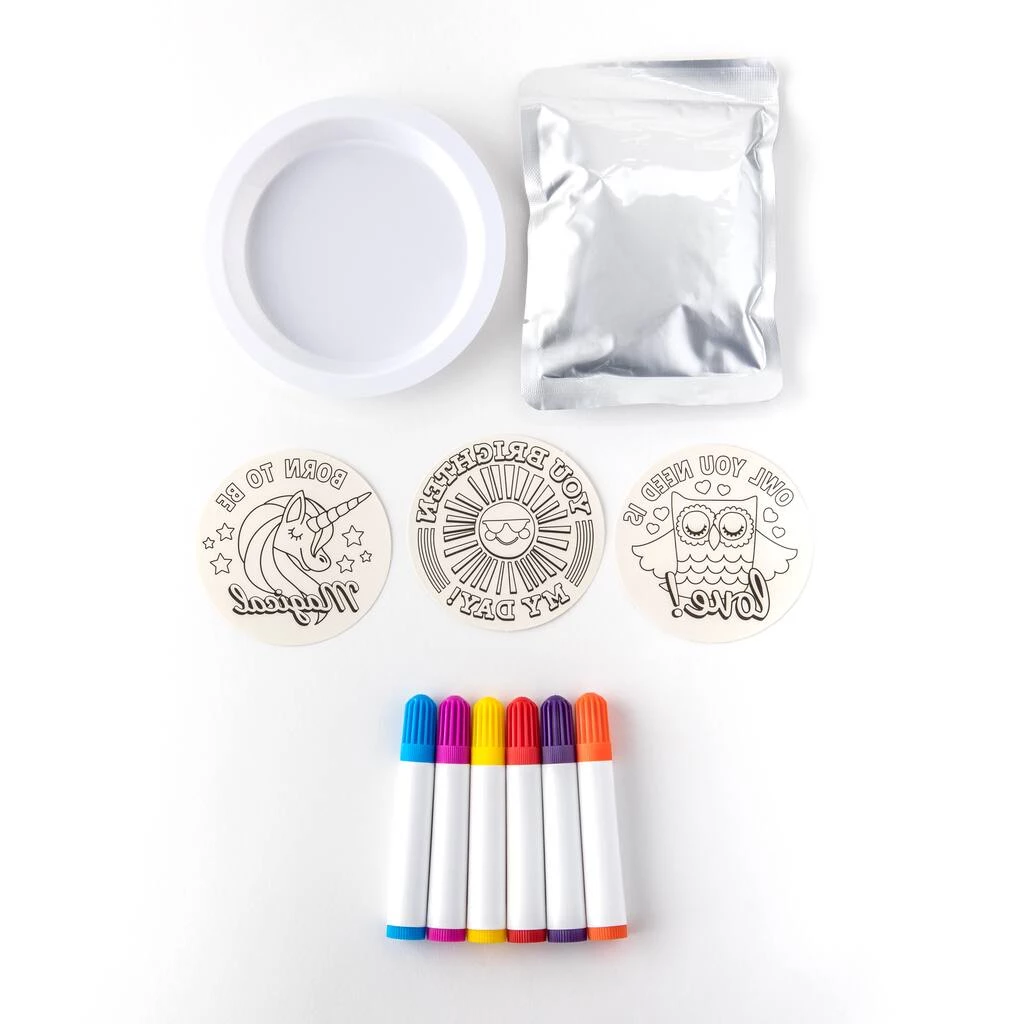 This kit will let your child form a trinket dish from clay and make a vibrantly colored keepsake using their unique creative touch. With most everything needed to create something special, this craft is perfect for after school or a rainy day.