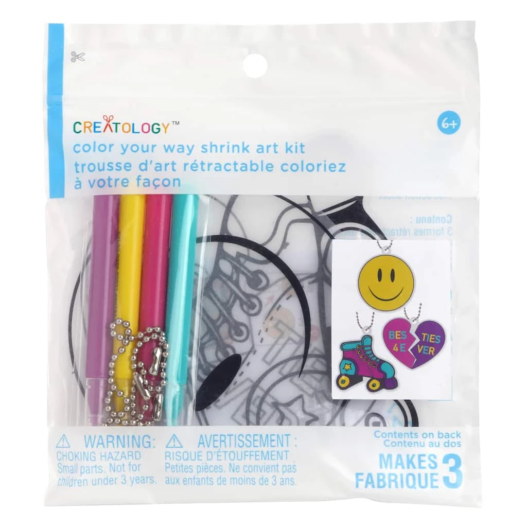This retro icon shrink art kit is perfect for keeping your little ones creatively engaged. It contains a variety of contents needed for them to get started!