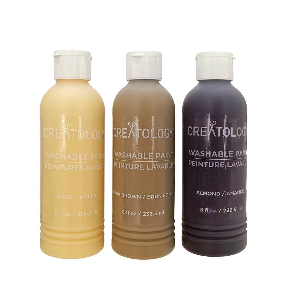 These paints are perfect for home arts and crafts as well as a variety of school projects. Great for use on paper and other porous craft surfaces, these skin tone paints are washable, so kids can get creative and crafty with less mess. Colors consist of Ivory, Almond and Dark Brown.