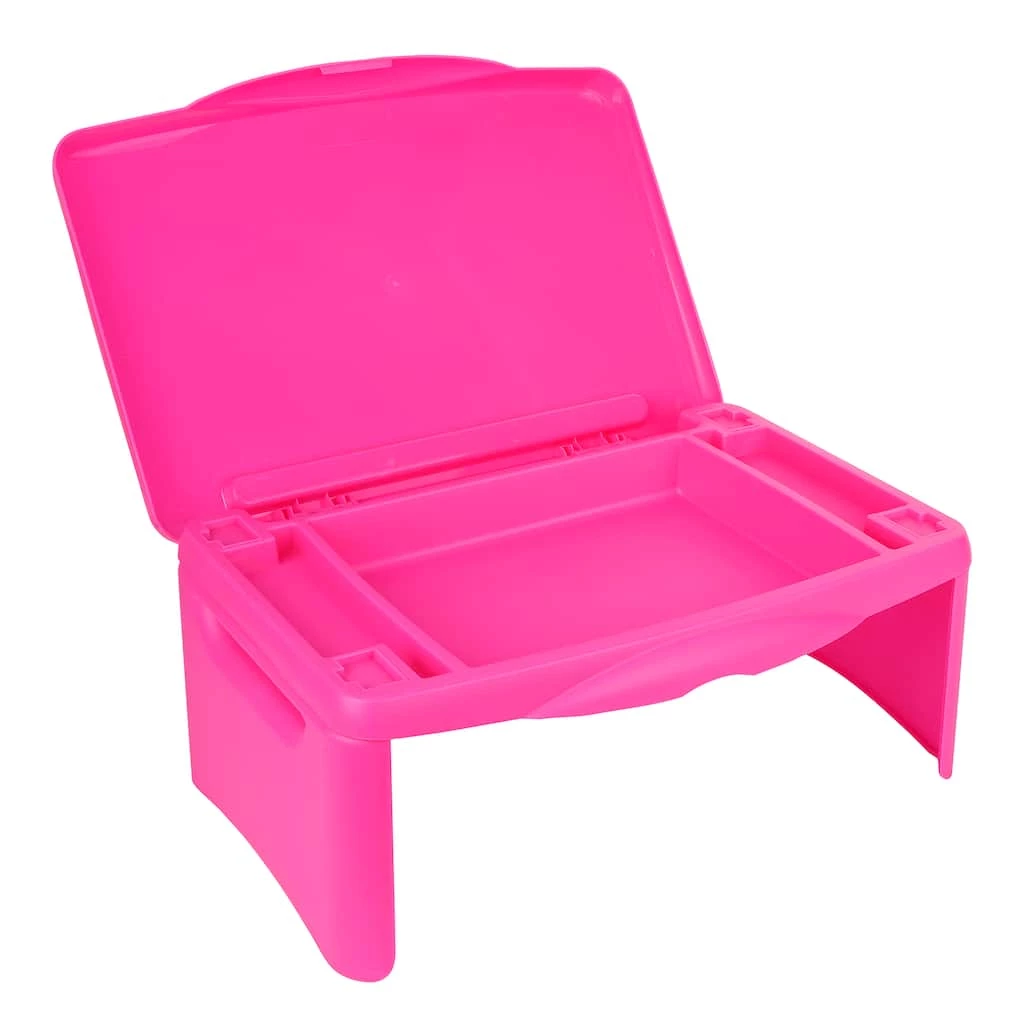 This adorable lap tray is perfect for your little one’s back to school collection. The tray’s surface opens to access built-in storage so kids can conveniently store paper, supplies and more, while keeping them contained when the lid is closed. The tray features foldable legs that are ideal for propping up the work surface while in use and folding down as needed for storage.