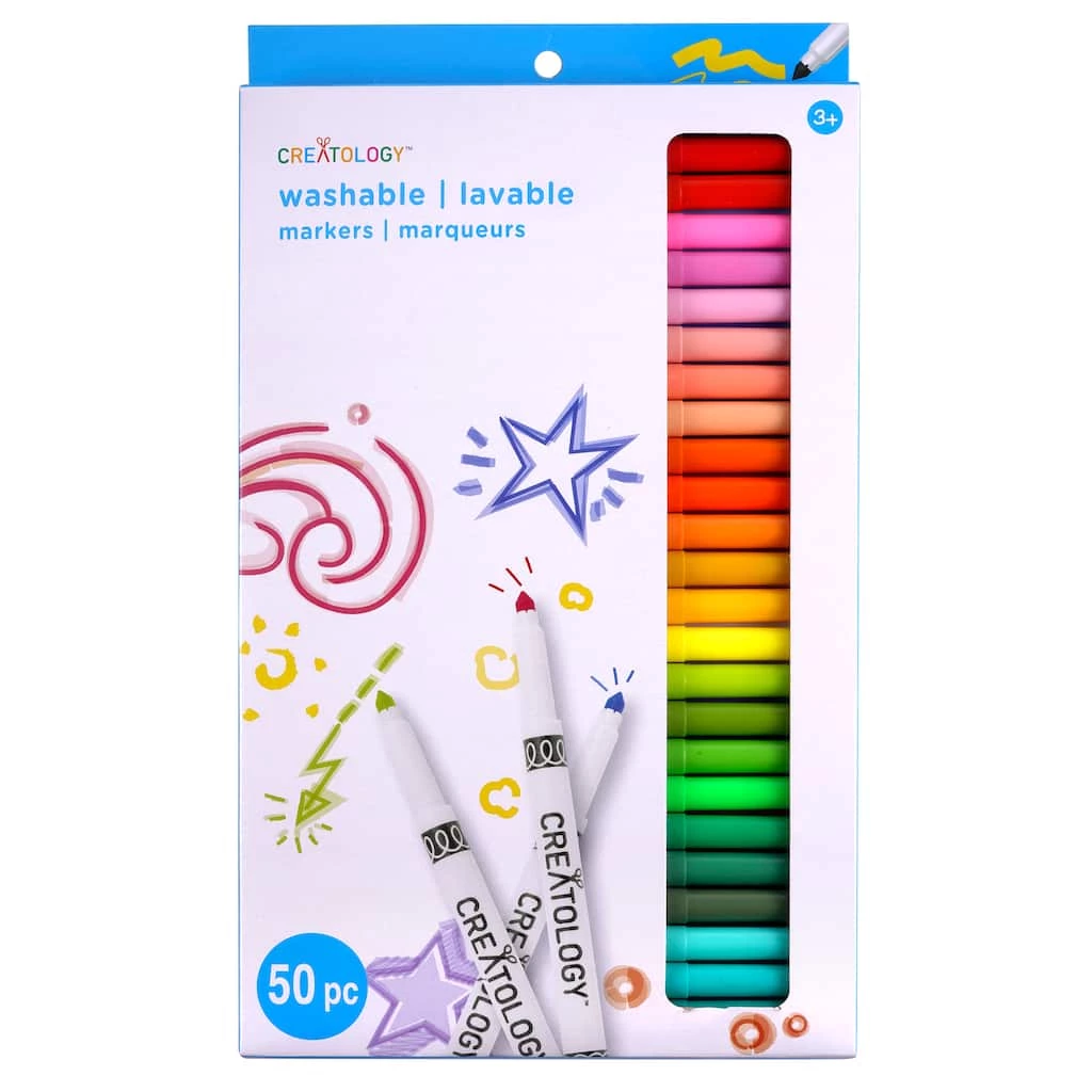 Draw and doodle designs with this washable marker set. It is great for art and craft projects and an essential for classroom supplies. The colors included are Red, Bright Red, Orange, Bright Orange, Dandelion, Yellow, Yellow Green, Light Green, Green, Bright Green, Olive, Asparagus, Sage, Forest Green, Dark Green, Turquoise, Teal, Aqua Green, Sky Blue, Pastel Blue, Light Blue, Denim Blue, Royal Blue, Blue, Indigo, Navy Blue, Mauve, Lavender, Purple, Lilac, Magenta, Raspberry, Geranium, Pink, Pastel Pink, Pale Pink, Peach, Salmon, Apricot, Tan, Mahogany, Brown, Dark Brown, Cocoa, Light Gray, Gray Blue, Slate, Gray, and Black.