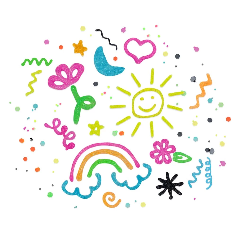 - 6 glitter glue bottles (0.65 fl. oz./19.2 mL each)