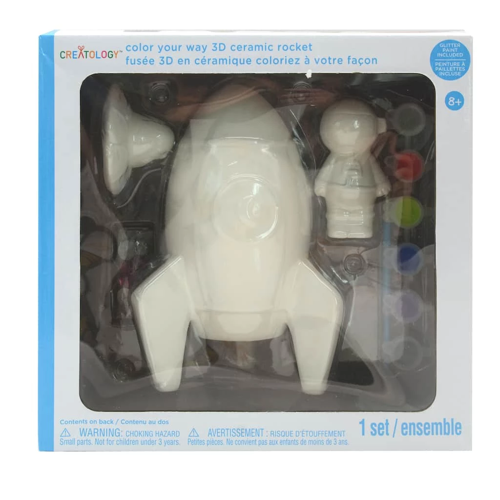 This rocket craft kit is the perfect activity to keep your little crafter entertained. Included are gems and paints to be able to personalize your rocket.