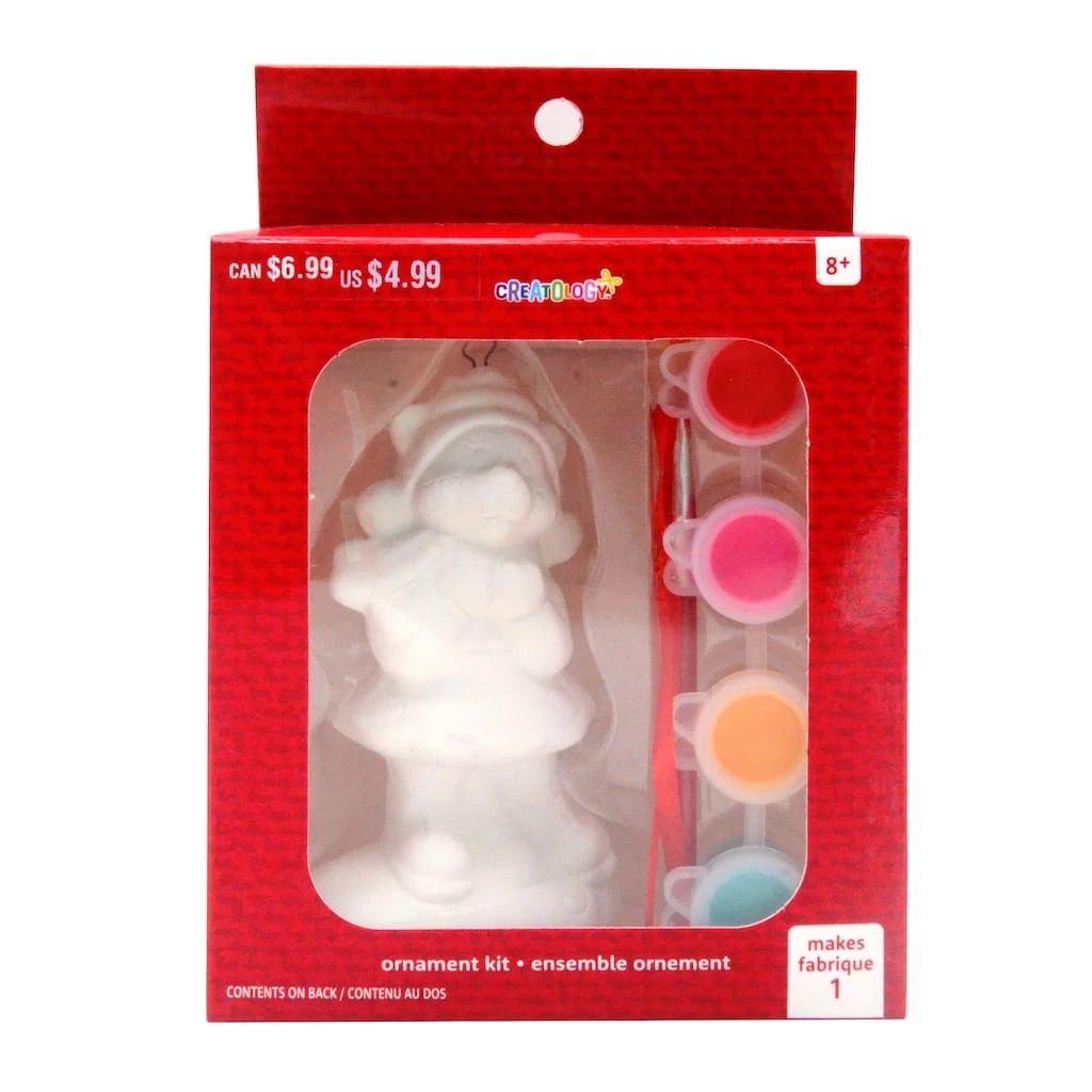 Bring in holiday cheer by painting this ceramic cheetah holiday character ornament by Creatology. This kit includes all materials to transform the included piece into a holiday favorite. Once dry and complete, attach ribbon and hang on your Christmas tree.