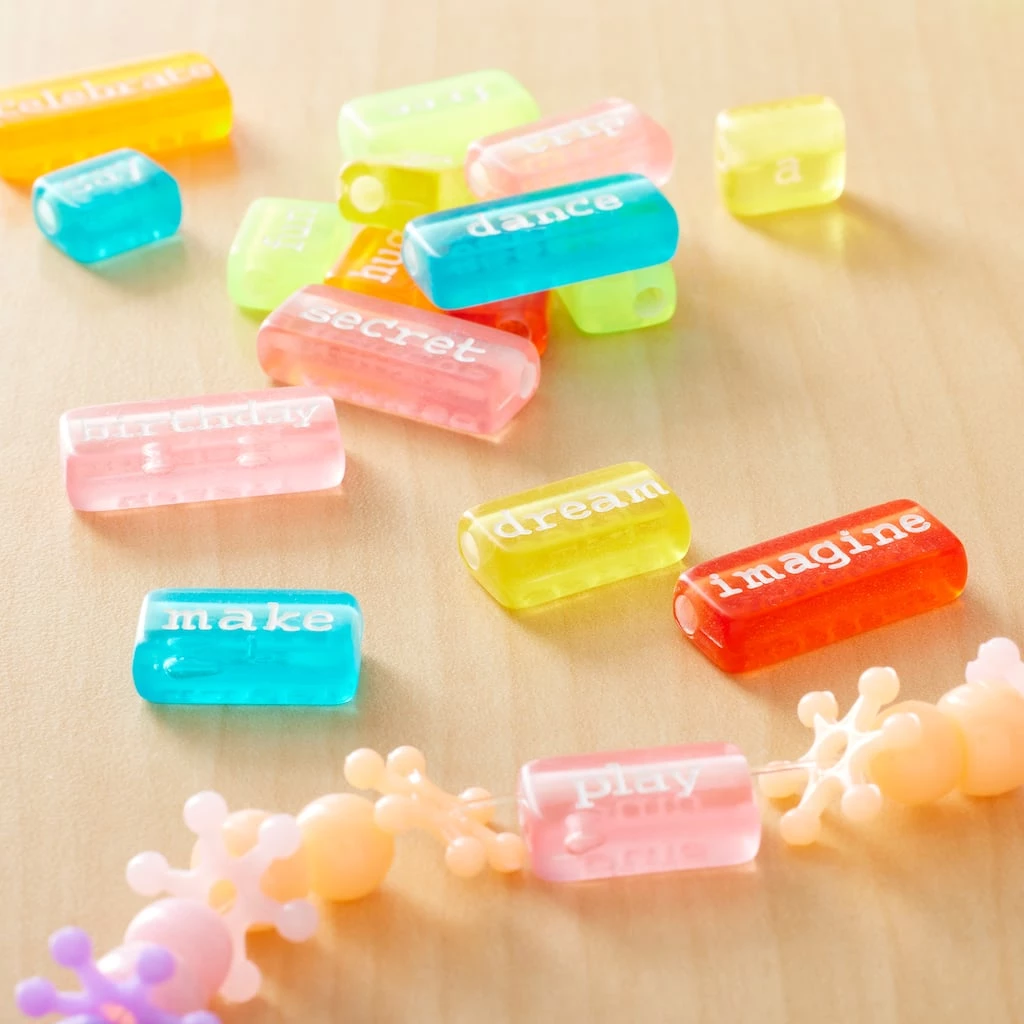 Your kids will love to make cute accessories with these colorful word beads by Creatology. These acrylic beads can be teamed with charms and cords to make different jewelry designs. They are also great for creating personalized keychains and friendship bracelets.