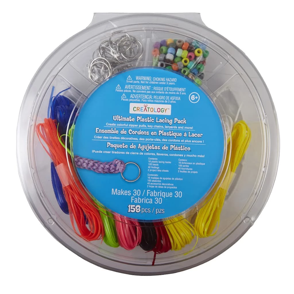 Keep your family busy with this fabulous kit! Spend hours of fun making colorful zipper pulls, key chains, lanyards and more.