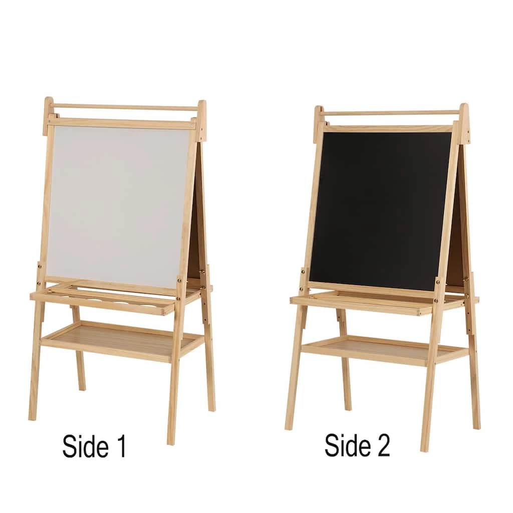 This adjustable wooden floor easel is a multi-functional easel that has a magnetic dry erase board on one side and a chalkboard on the reverse. Use this board at school, day cares, and your play room to encourage endless hours of creative fun. This easel will also make a great gift for your child this holiday season.