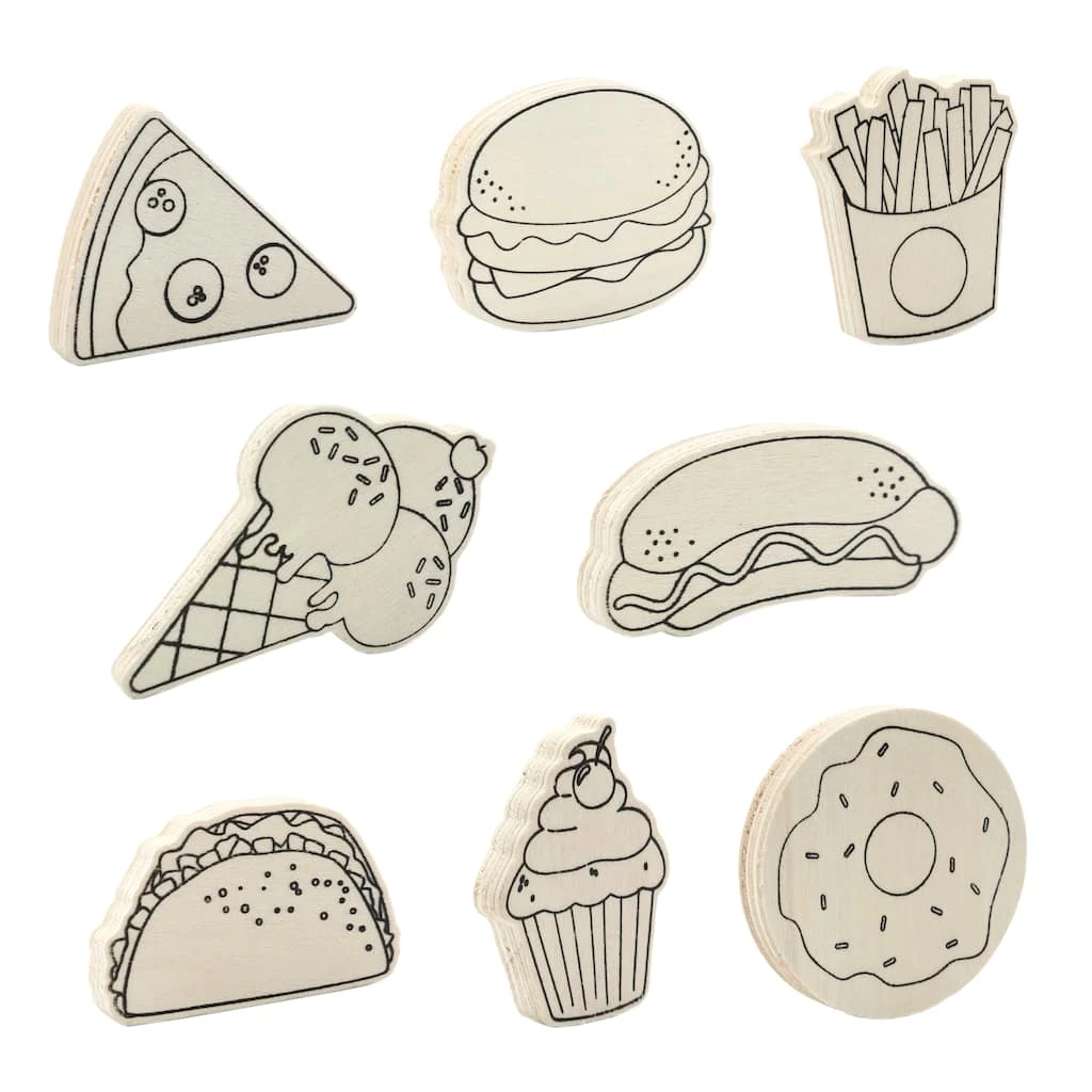 This food-themed color-in wood play set is the perfect activity for your little artists. It features everything they’ll need to get started immediately.