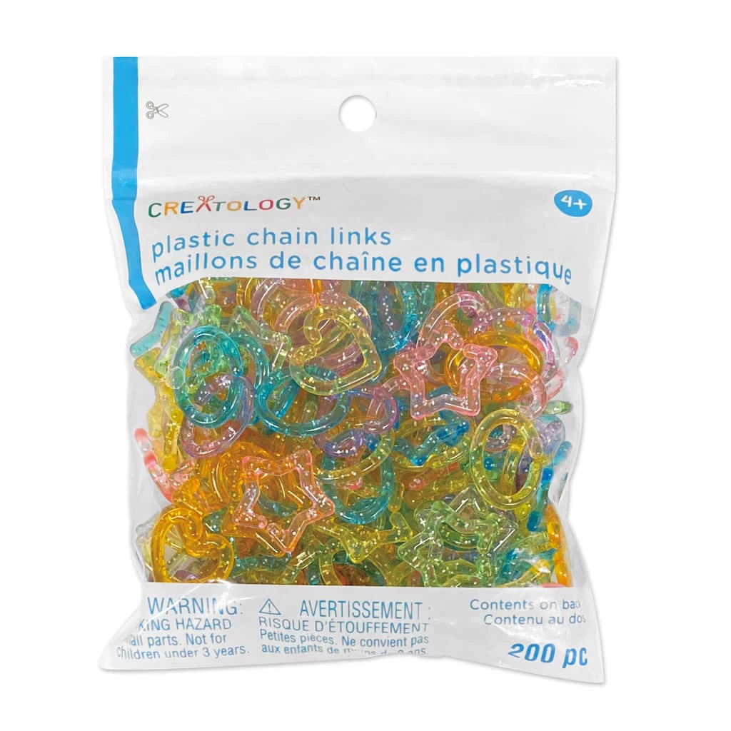This glittery pastel mix of plastic chain links in an assortment of stars, hearts and ovals is a wonderful way to spark your child’s imagination. Perfect for making bracelets with friends, crafting personalized keychains, embellishing handmade picture frames and more, combine with cord, faceted beads, buttons and other embellishments to see your little one’s creations come to life.