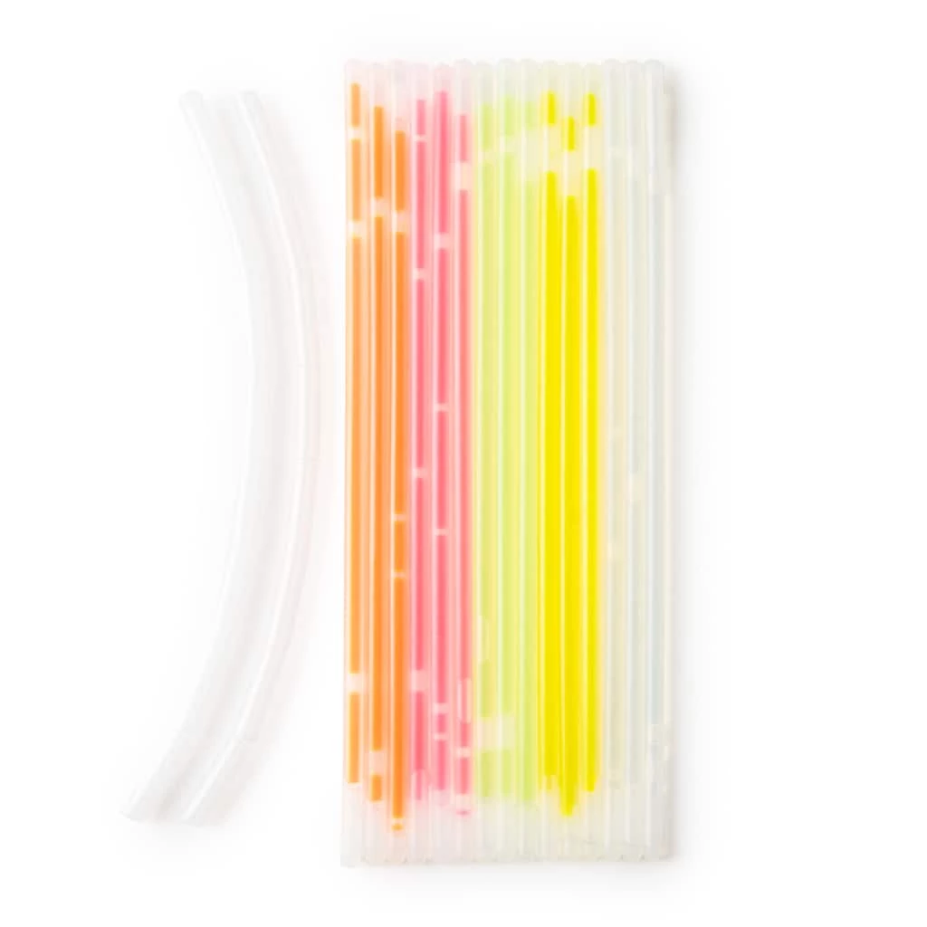 Kids of all ages will have fun playing with these colorful glow bracelets. Whether your kids wear one or line their arms, you will be able to keep track of them on dark evenings while cooking out, camping or even on Halloween night. They can even connect a few pieces together to make a glowing necklace.