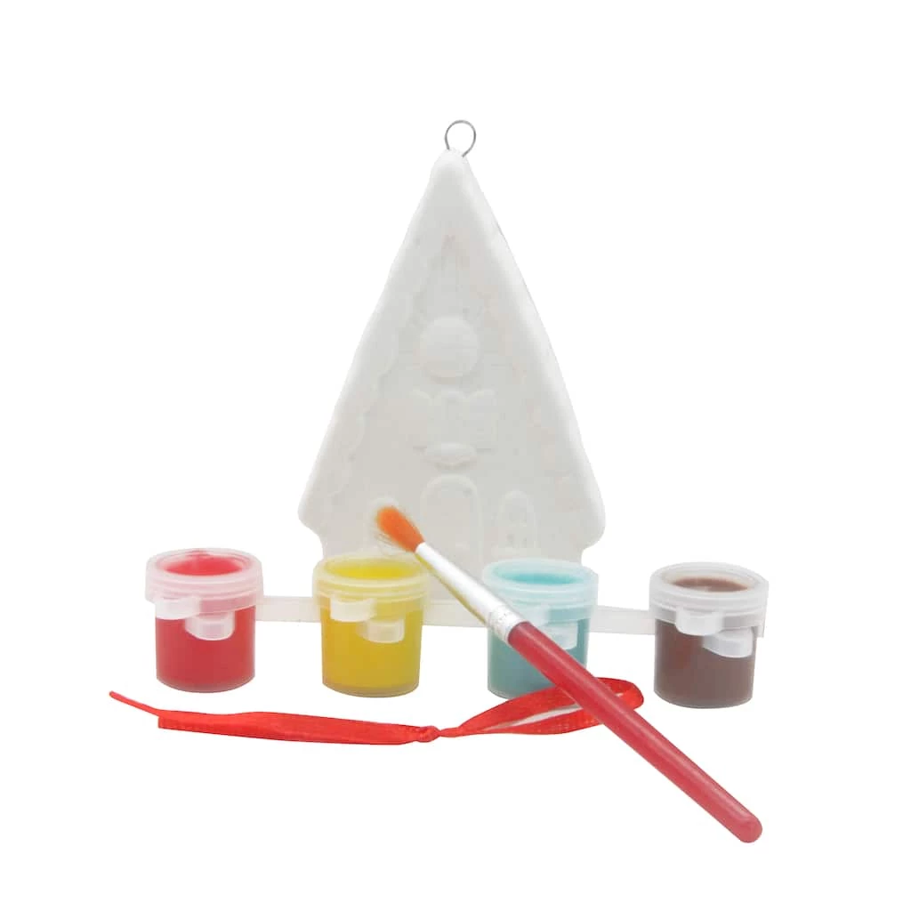 Bring in holiday cheer by painting this ceramic house ornament by Creatology. This kit includes all materials to transform the included piece into a holiday favorite. Once dry and complete, attach ribbon and hang on your Christmas tree.