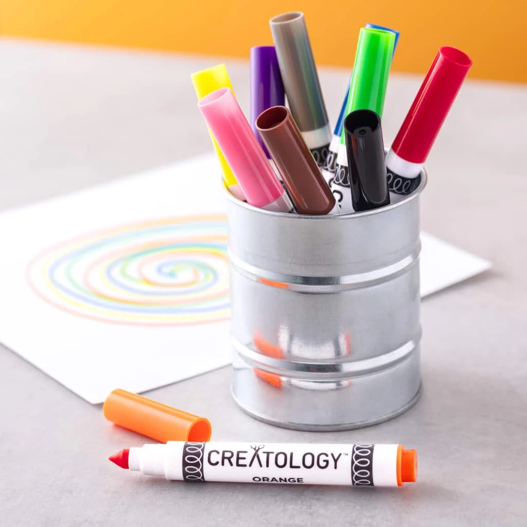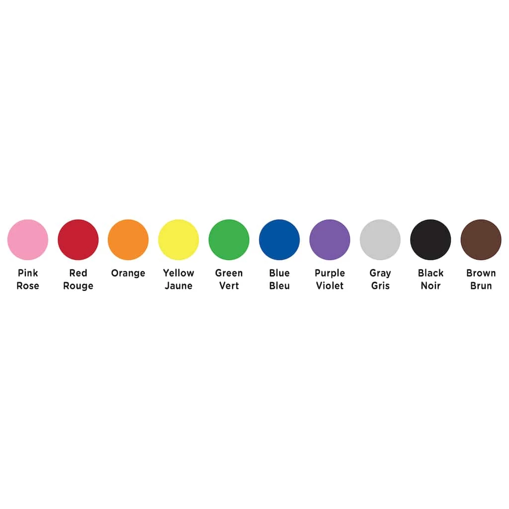 Draw and doodle designs with this primary color broad line marker set. It is great for art and craft projects and an essential for classroom supplies. The colors included are Red, Orange, Yellow, Green, Blue, Pink, Purple, Gray, Black and Brown.