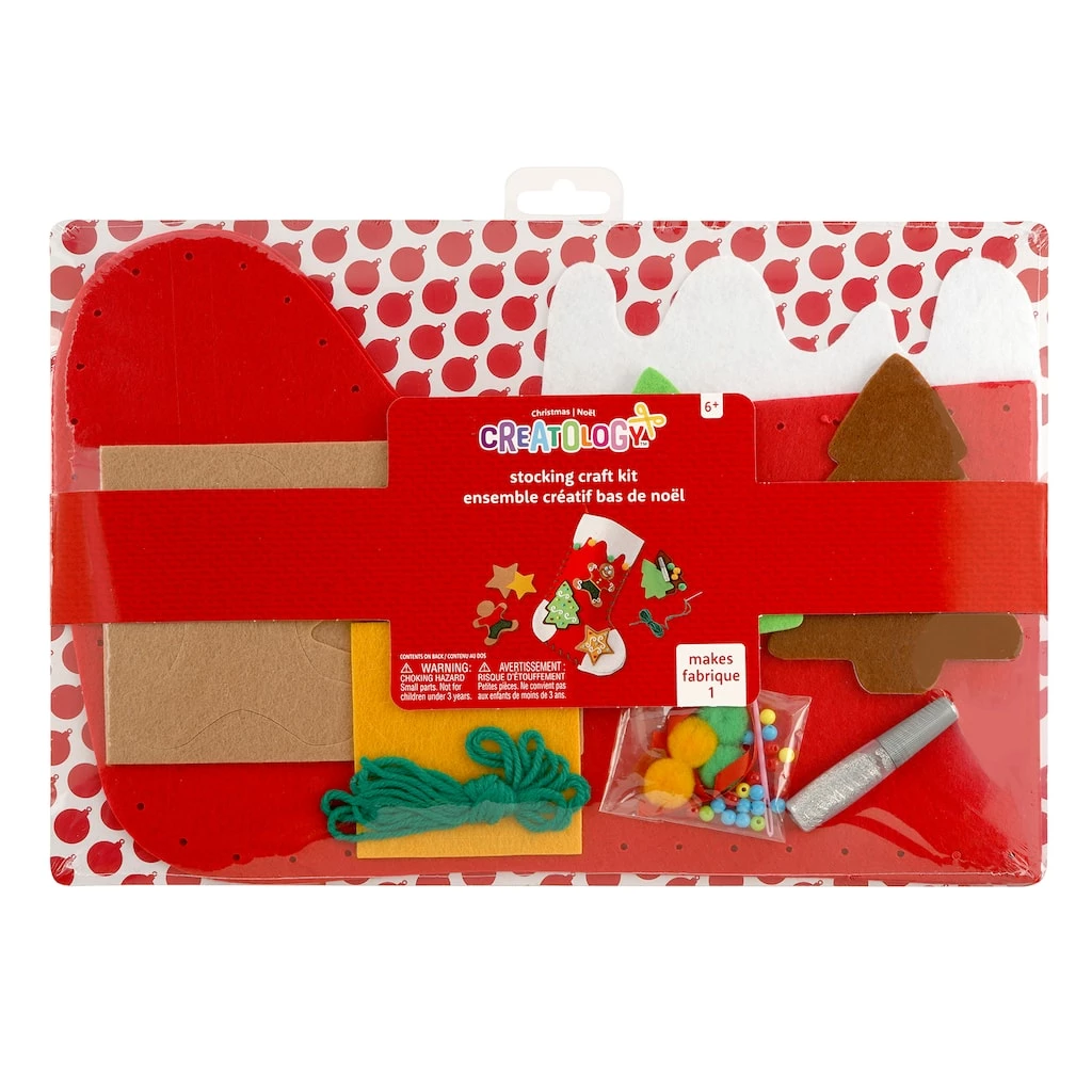 Create a whimsical felt stocking for your holiday season! This kit features a gingerbread man, Christmas tree and star.