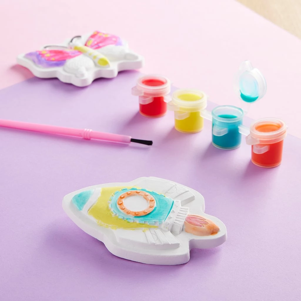 Keep your little ones creatively engaged with this color-in magnet. Let them embellish this magnet with the paint hues included in the kit for the perfect finish.