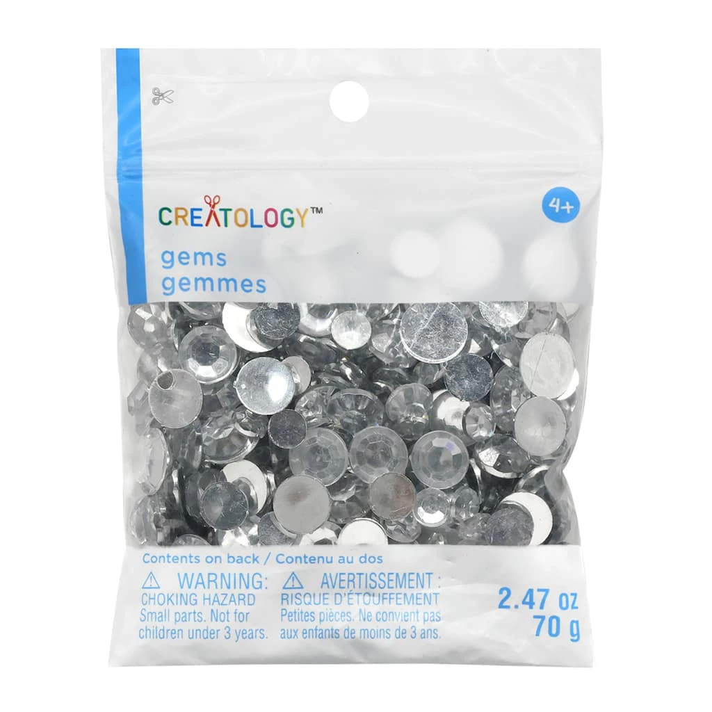 This pack of silver round gems are ready to decorate a variety of flat surfaces. Just add glue to the back of the gems to accent craft projects at home, camp or school!